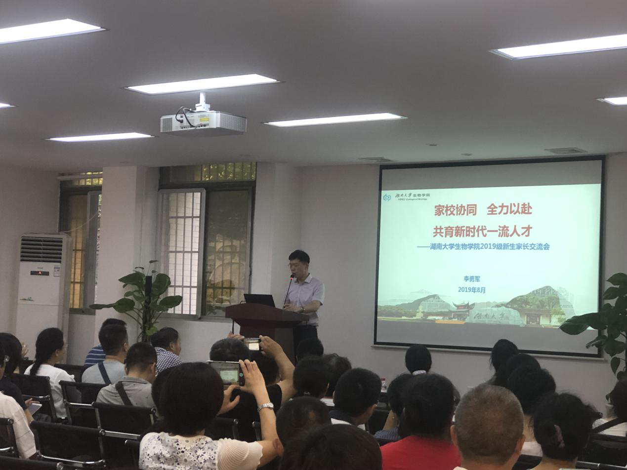 紧接着,陈书记介绍了2019级的新生情况、教师情况和教师的大致工作。陈书记向家长们提出希望同学们尽快适应大学生活,做好角色转变,规划好大学生活的同时也要做好人生的规划,也提醒家长们给学生留出更多的个人空间,不要对学生过分关注。