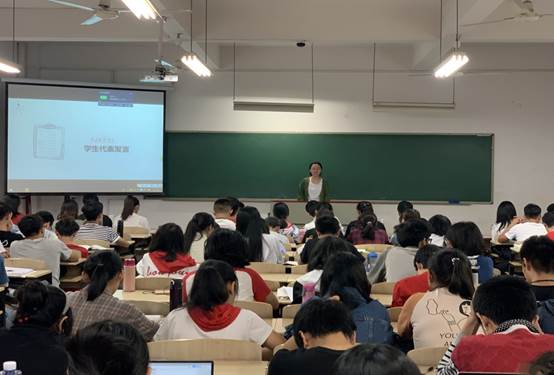 接下来,信息院16级代表温化楷和辅导员潘昳锦相继发言。温化楷谈道:“大一的时候要明确好本科毕业后的方向,是读研、工作或是出国;与此同时也要丰富自己的大学生活,例如参与学生工作和社团活动并规划好学习时间和课余时间。”他还建议同学们从现在开始写一份对未来的简历并为之奋斗。潘昳锦老师则首先对年级委积极筹办本次年级大会提出了赞赏。随后,潘老师对现阶段同学们的学习和生活状态进行了总结并指出其中的不足之处。她号召同学们加强自我管理、端正学习态度并指出作为成年人同学们应更具责任和担当。